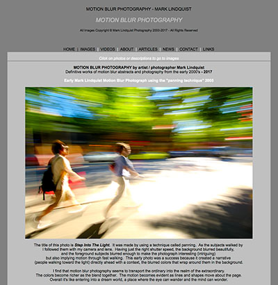 ENTER> MotionBlurPhotography.com MotionBlurPhotography.com is Mark Lindquist's website dealing with his photography and motion blur abstracts. |
